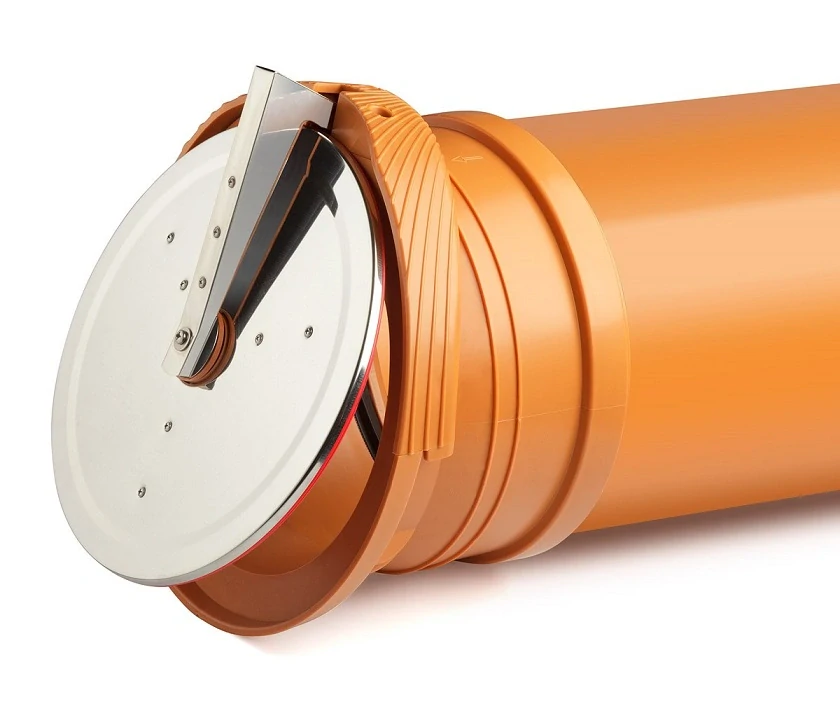 Koncová klapka 315mm se instaluje na konce odpadního KG potrubí vstupujících do společných studní, septiků a na potrubí odvádějící dešťovou vodu do příkopů, řek a rybníků.