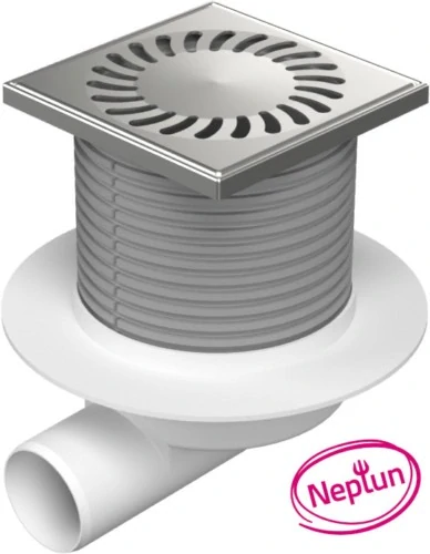 Podlahová vpusť boční D50, NEPTUN, límec, nerez mřížka SUNskladem635 Kč/ ks525 Kč bez DPH