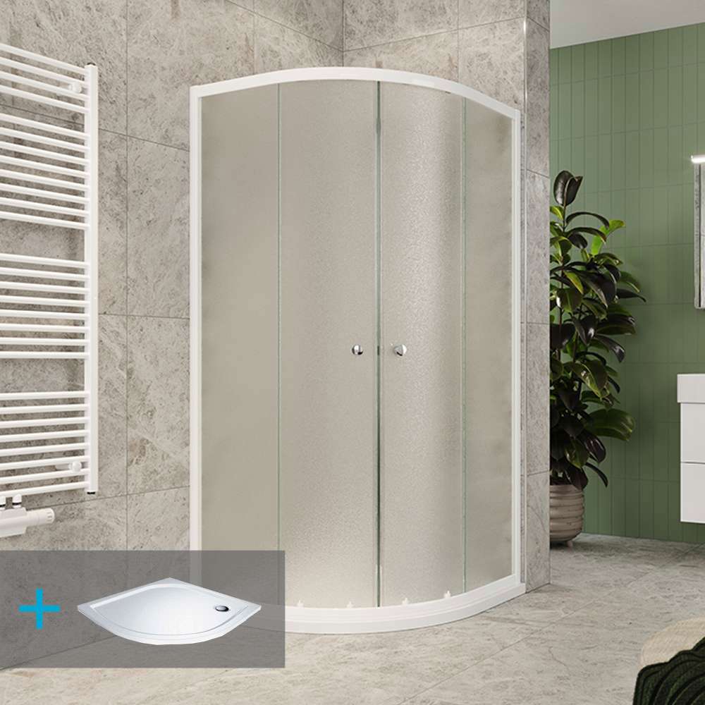 - Sprchový set z Kory Lite, čtvrtkruh, 90 cm, bílý ALU, Grape a vaničky vč. sifonu, bez nožiček