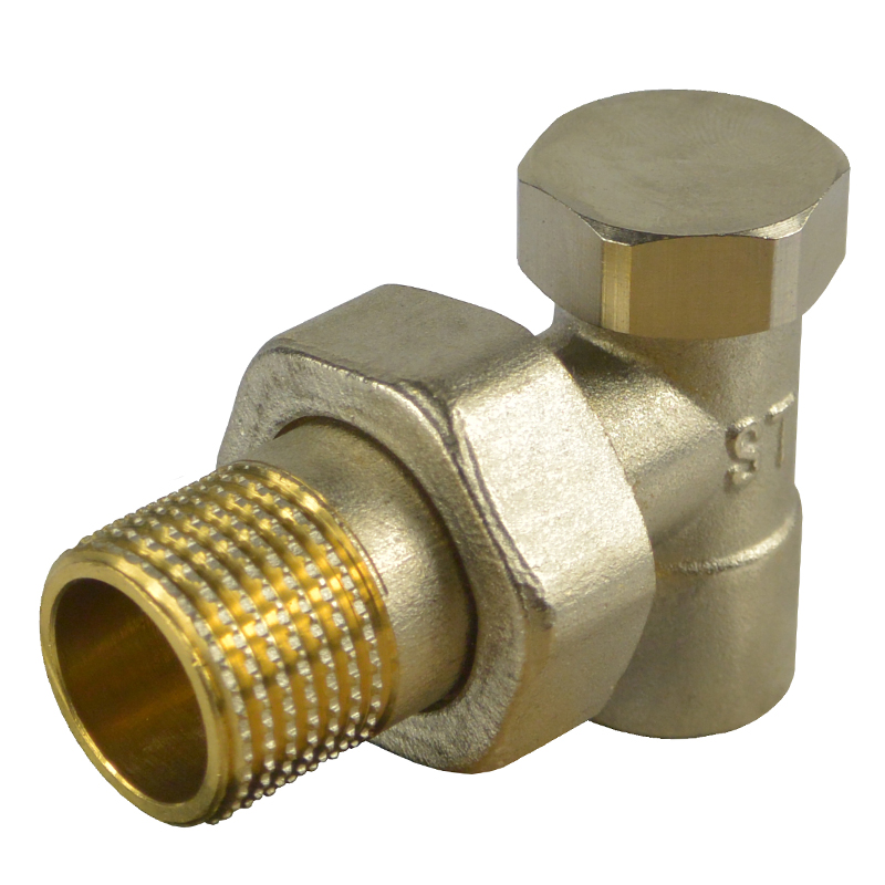 - Šroubení radiátorové uzavíratelné, rohové, pájecí, 1/2“x15 mm