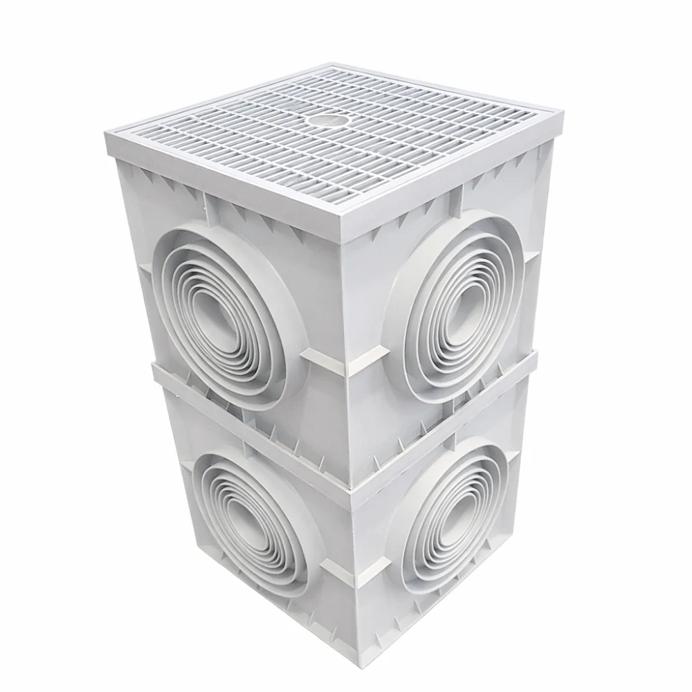 Horní část slouží jako vtoková – připojíte sem přítoky z lapačů střešních splavenin, vpustí nebo dalších svodů z dešťové kanalizace. Otvory se vytvářejí vykroužením v předlisovaných kruzích.